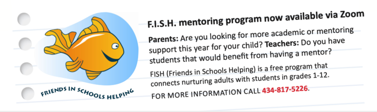 FISH (Friends in Schools Helping) is a JABA intergenerational program that connects nurturing adults with students in need of individualized attention in a classroom or Zoom setting. Call 434.817.5226 to learn more about becoming a FISH volunteer or requesting a mentor. There may be a wait list for new volunteers.
